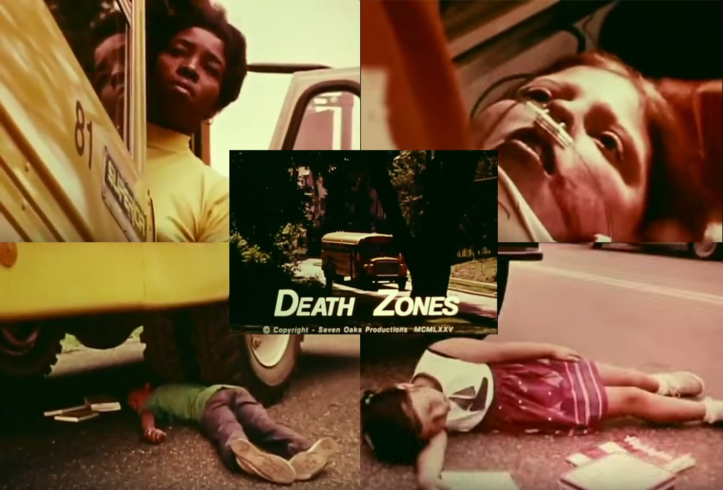 Produced and directed by Gene Starbecker, the “father of the school bus safety film” this classic cult film features lots of noisy, wisecracking kids and a catastrophe that has permanently scarred (!) anyone who has seen it in school over 30 years ago. Starbecker produced over 970 documentaries and 300 television programs (including the gritty Broderick Crawford cop show “Highway Patrol”).  The story concerns two horrific bus accidents and the rowdy behavior of the kids aboard that led to the deadly outcomes.  There are knife-fights and dogs, smoking, pill-popping and even mice on the loose!  The bus drivers are played by veteran actors Josh Mostel (son of Zero Mostel) and Peggy Pope (9 to 5), still early in their careers.